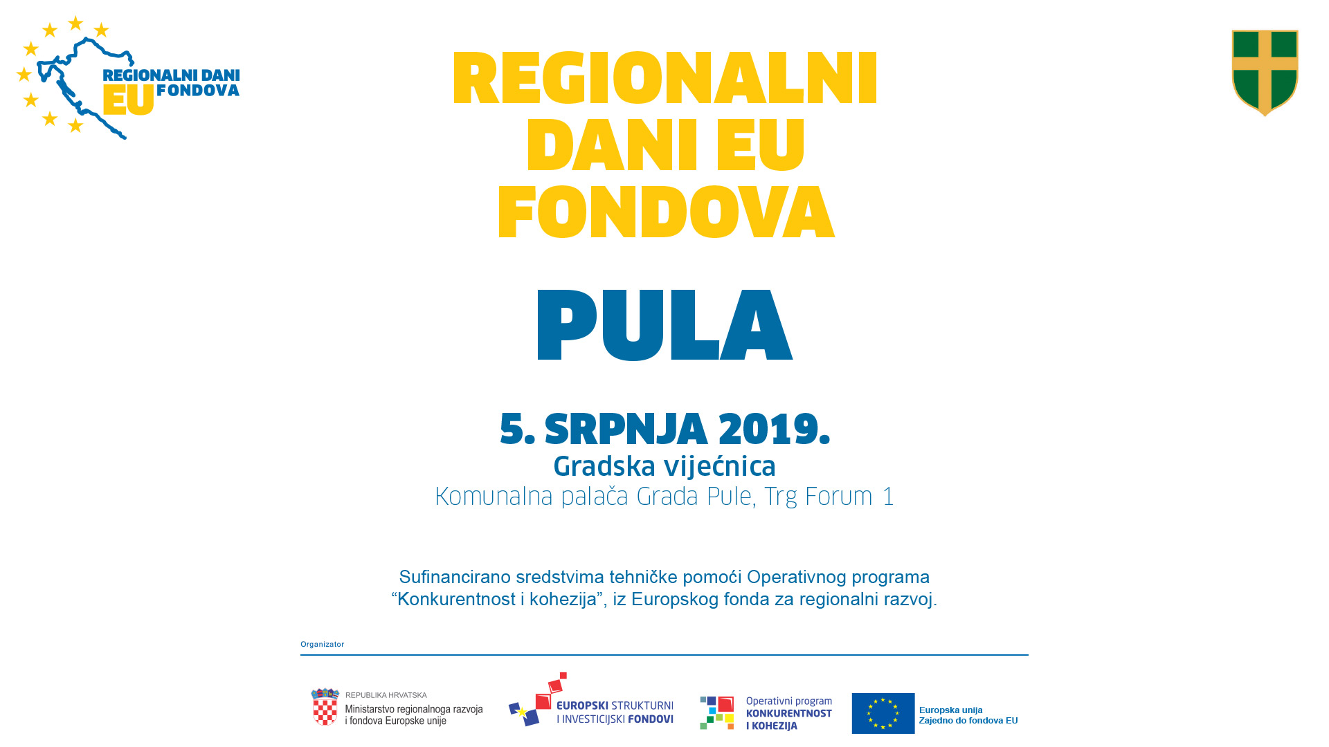 Ministarstvo regionalnoga razvoja i fondova Europske unije u suradnji s institucijama u sustavu upravljanja i kontrole korištenja EU fondova i Gradom Pulom organizira informativno-edukativnu manifestaciju „Regionalni dani EU fondova“ s ciljem informiranja javnosti o korištenju fondova Europske unije putem besplatnih edukacija.