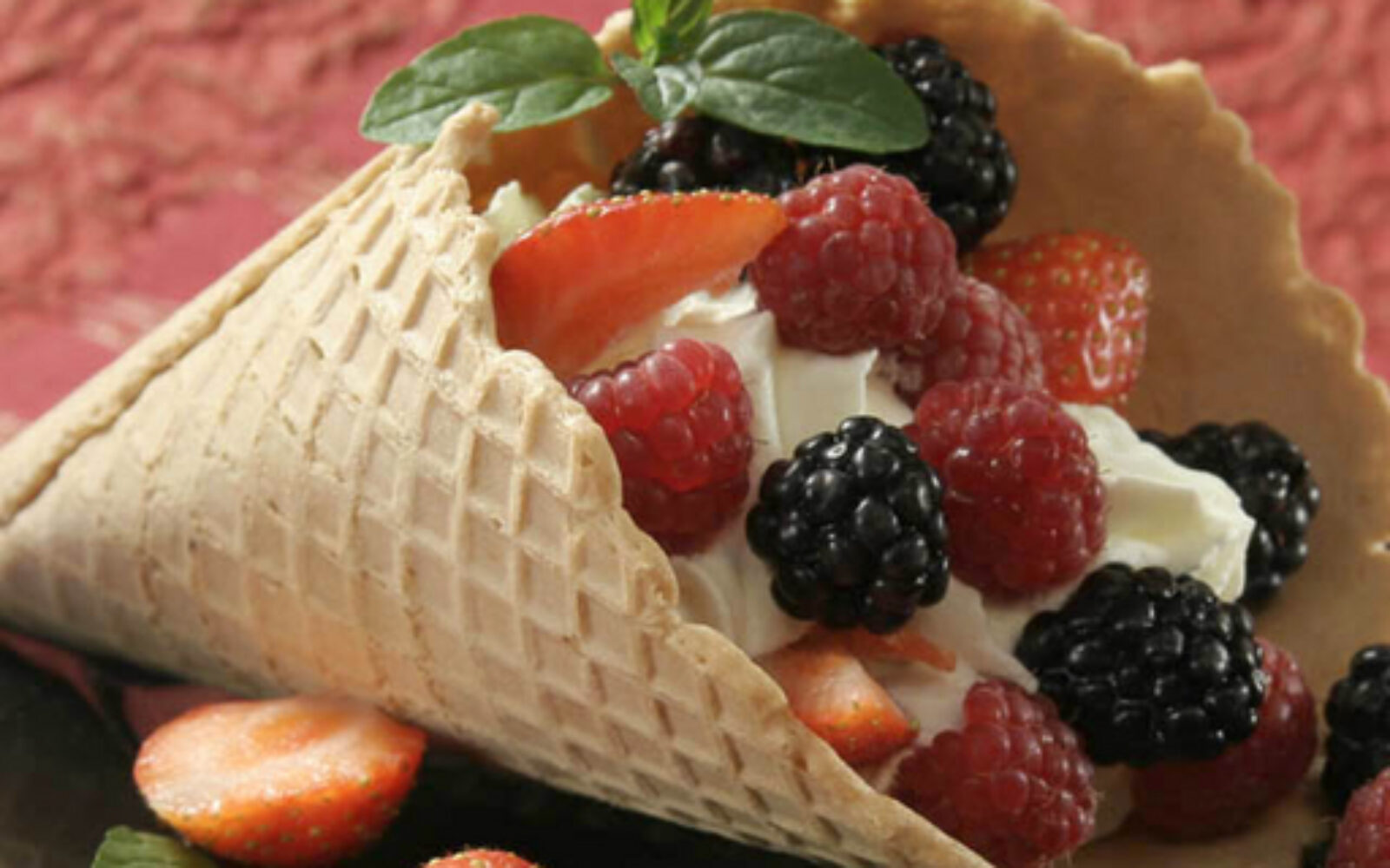 Recept dana Norveški desert s bobičastim voćem Pripremljene kornete sa šlagom i voćem poslužite odmah kako se kornet ne bi navlažio.