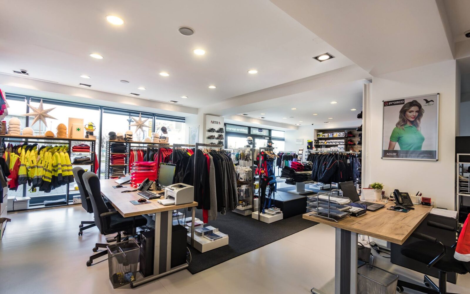 Tvrtka Prosco danas je uspješan distributer osobnih zaštitnih sredstava za sve vrste industrija, a ako bismo taj pojam željeli kategorizirati, najveći dio njihova asortimana čini radna odjeća, radne cipele, zaštitne rukavice, naočale, radne majice, oprema za zaštitu dišnih puteva te oprema za rad na visini.