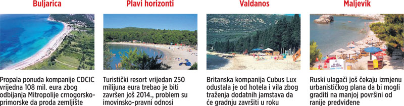 Naime, ukupna vrijednost projekata koji su se trebali realizirati u Buljarici, Maljeviku, Kraljičinoj plaži, Valdanosu i Plavim horizontima iznosi čak milijardu i 50 milijardi eura. Crnogorska vlada još je u svibnju 2016. objavila javni poziv za valorizaciju Buljarice.