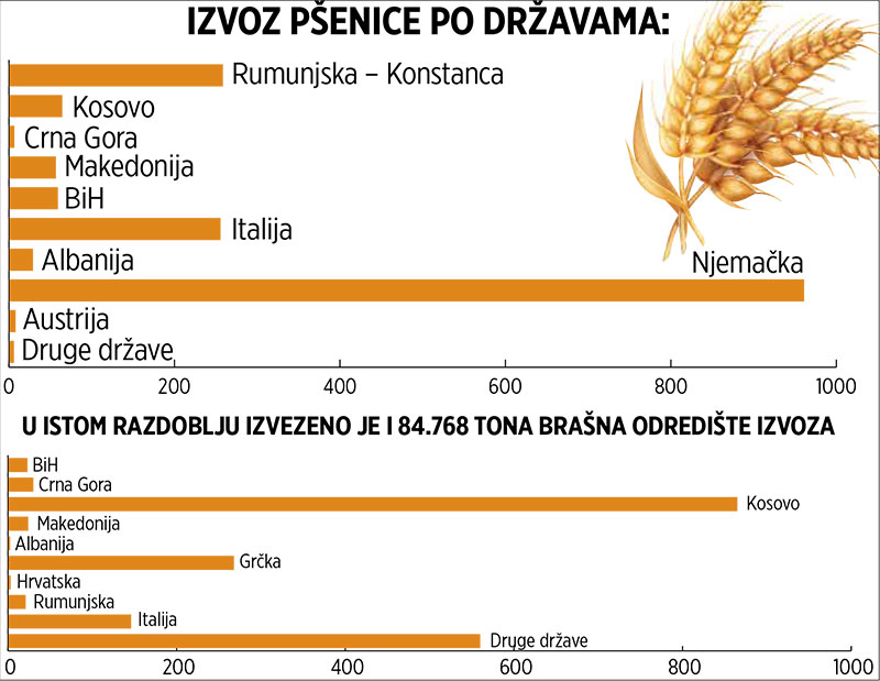 Vlada Srbije dopustila je izvoz u Albaniju ranije ugovorenih količina pšenice, kukuruza, brašna i ulja jer ih ima u dovoljnim količinama.