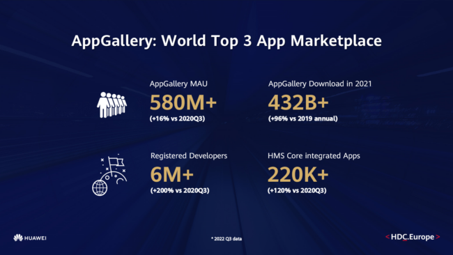 Huawei rast HMS ekosustava u 2022. pripisuje kontinuiranim inovacijama koje su potaknule AppGallery da postane jedna od tri najbolje globalne trgovine aplikacija i portal za besprijekorna korisnička iskustva u svim scenarijima i na svim uređajima za milijune Huawei korisnika.