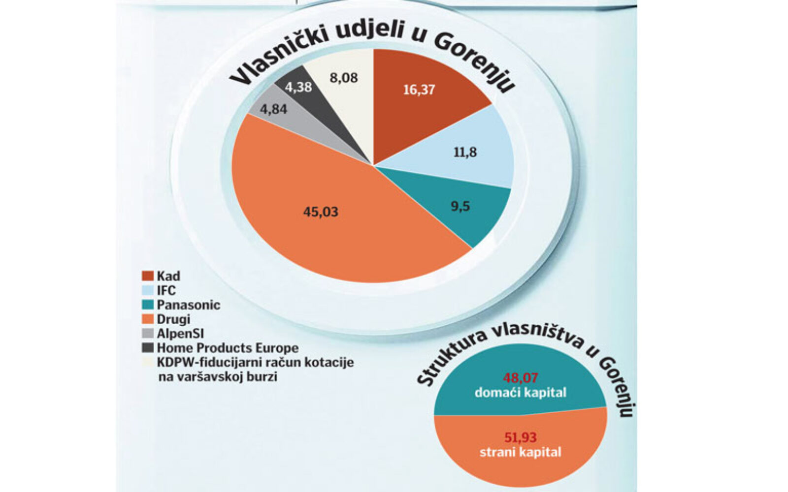 I Gorenje, posljednji slovenski socijalistički div iz okvira realnog gospodarstva koji je na tamošnjoj poslovnoj sceni uspješno preživio tranziciju i opstao iskoračivši čak i u širu regiju, zapravo više nije – slovenski. Nakon tri dokapitalizacije, iskazane kroz ukupnu vrijednost od 36,6 milijuna eura i realizirane u posljednjih godinu i pol, sada 51,9 posto vlasničkog udjela u Gorenju drže stranci.