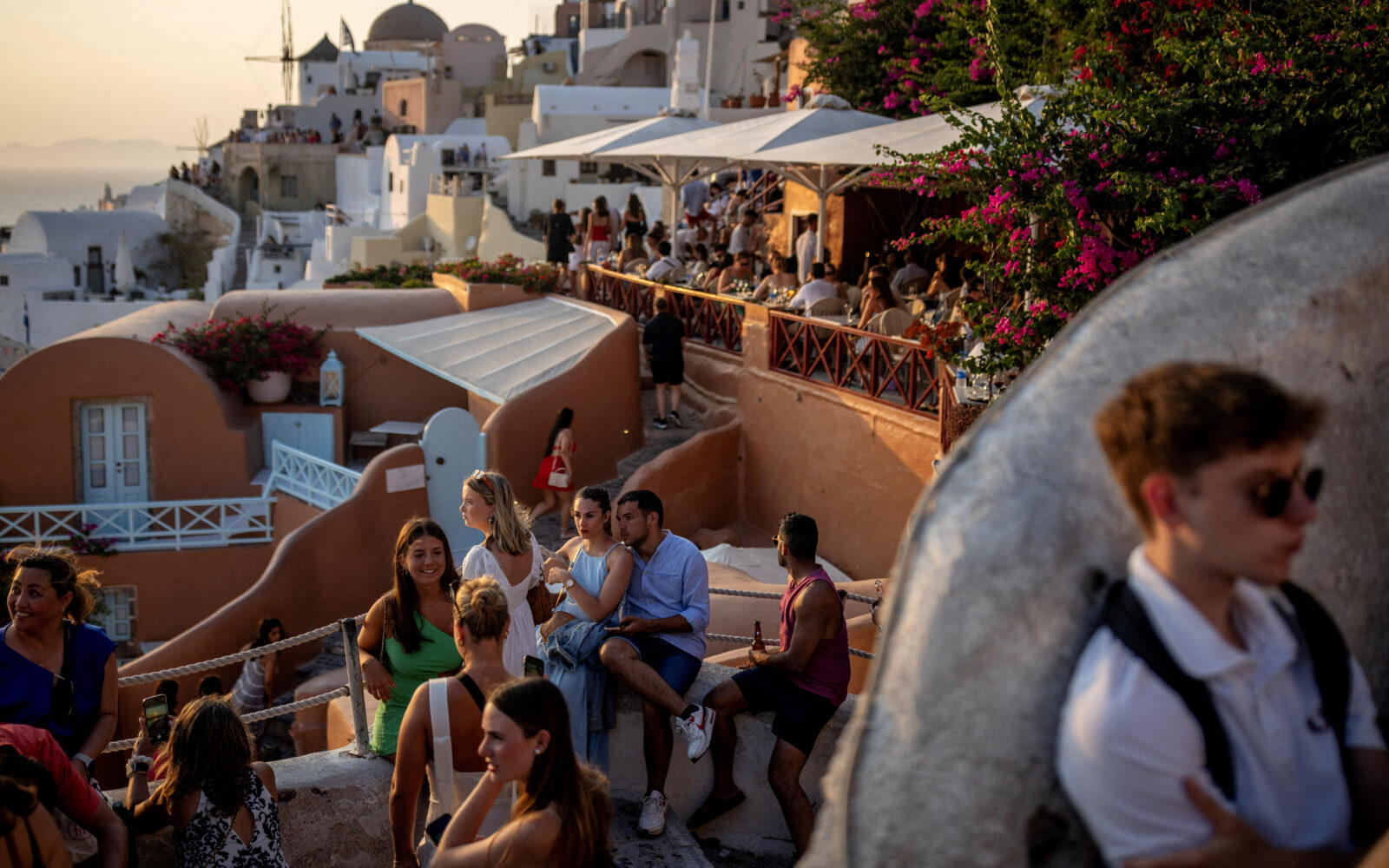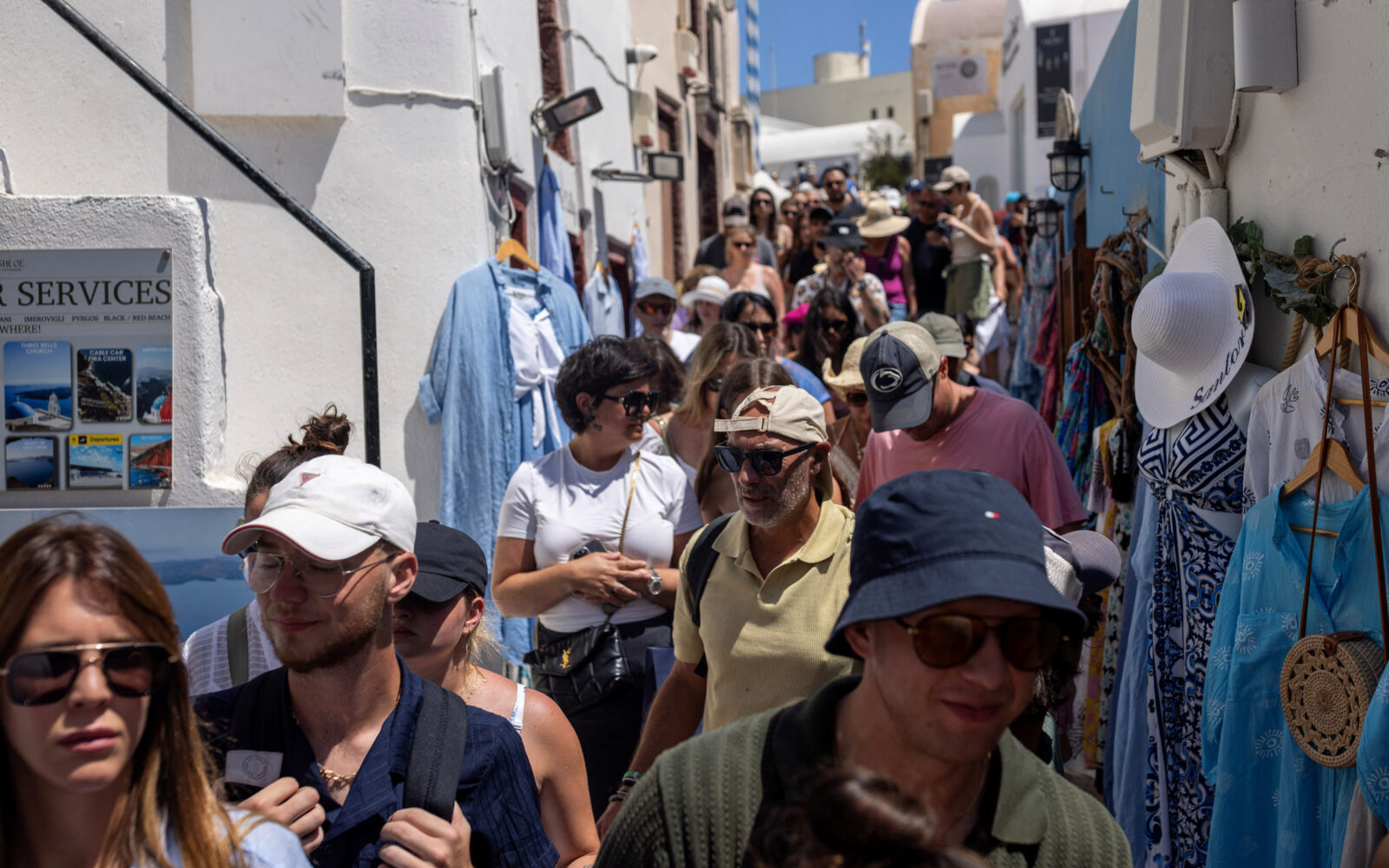 Čak 17.000 putnika na kruzerima stiže na otok u špici sezone, krećući se prema turističkim centrima kao što je glavni grad Fira na sjeverozapadu, poznat po svojim spektakularnim zalascima sunca.