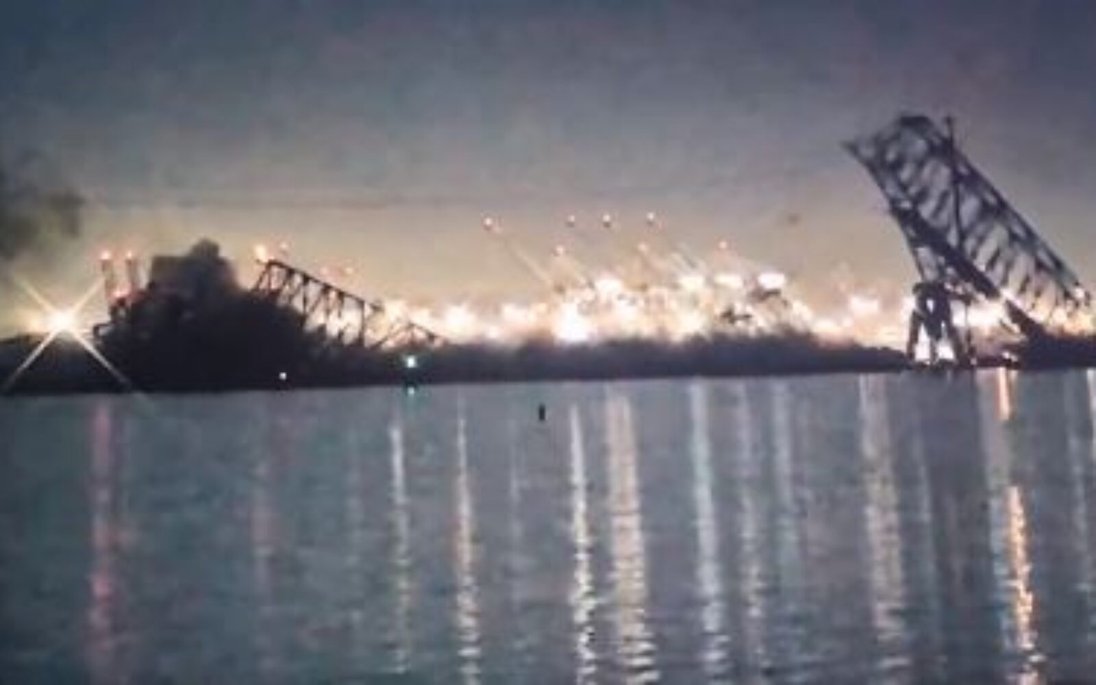 U jedan od potpornih stupova mosta udario je kontejnerski brod Dali koji plovi pod singapurskom zastavom. Na video snimkama snimljenim na mjestu nesreće vidi se urušavanje nekoliko lukova mosta.