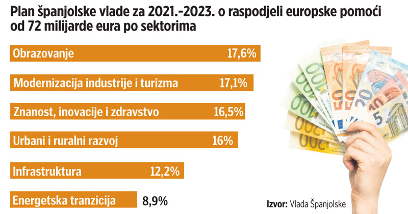 Najavljeni planovi trebali bi preobraziti španjolsko gospodarstvo, no dio analitičara upozorava kako ne treba biti previše optimističan u vezi učinkovitosti europske financijske pomoći. Kako piše Financial Times, Španjolska očekuje da će se iz fonda za oporavak vrijednog 750 milijardi eura sliti oko 140 milijardi eura.