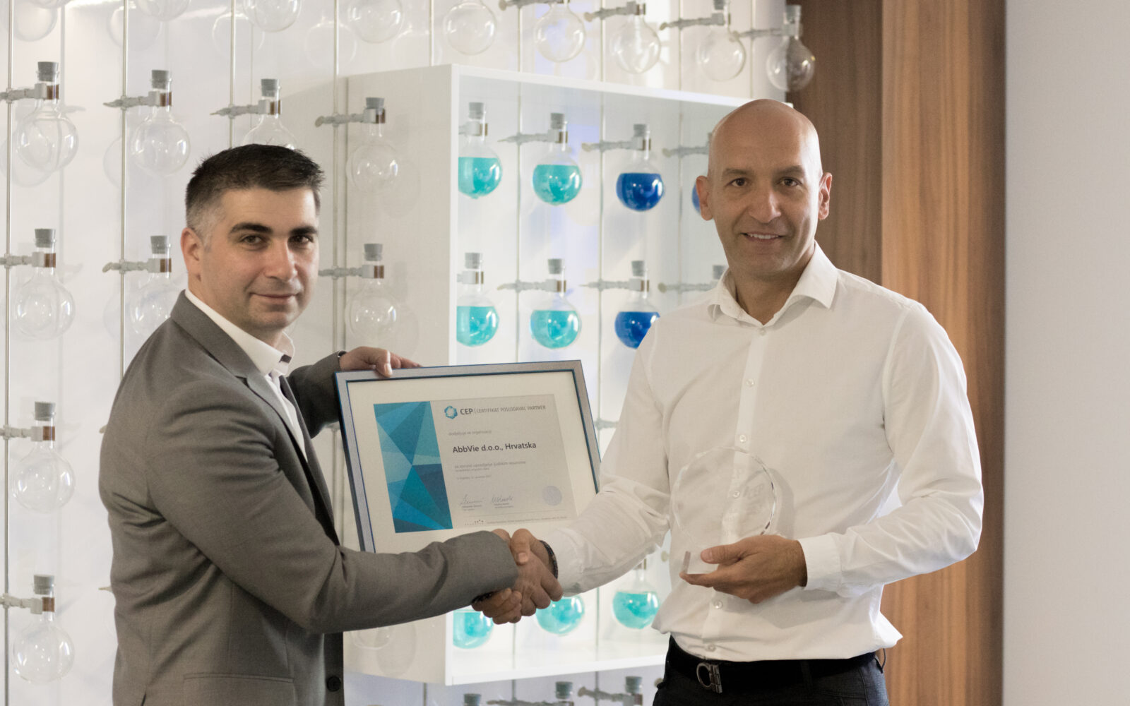 promo AbbVie dobitnik priznanja za kvalitetno upravljanje ljudskim resursima Ljubiša Mitof-Višurski, General Manager Abbvie Adria primio/la je Certifikat Poslodavac Partner od Aleksandra Zemunića, člana Uprave tvrtke SELECTIO.