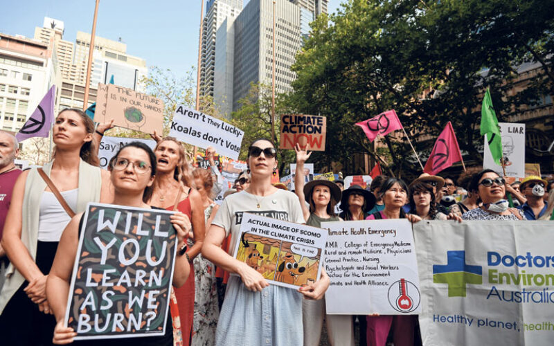 Požari ne posustaju Ljuti Australci prosvjeduju protiv vladine neaktivnosti Glavne ulice u Sydneyju blokirali su prosvjednici s transparentima na kojima je pisalo 'Ne postoji klima B' i 'Spasite nas iz pakla'.