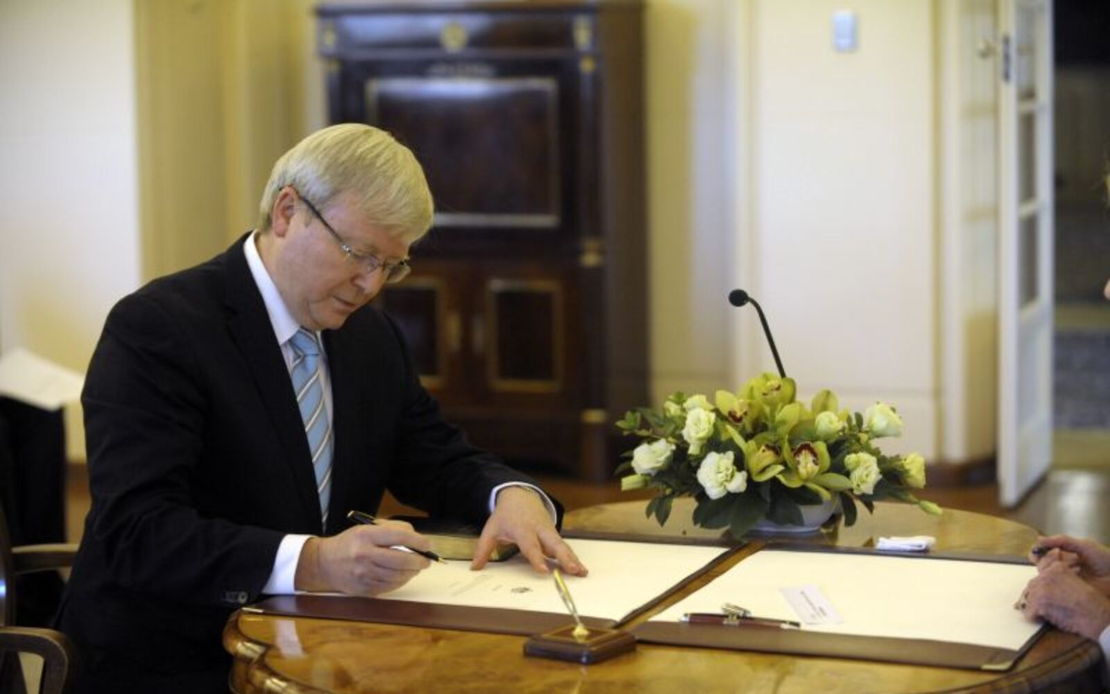 Novi šef vlade Kevin Rudd službeno imenovan australskim premijerom Rudd, koji je preuzeo i vodstvo Laburističke stranke, morat će je predvoditi na parlamentarnim izborima predviđenima za 14. rujna