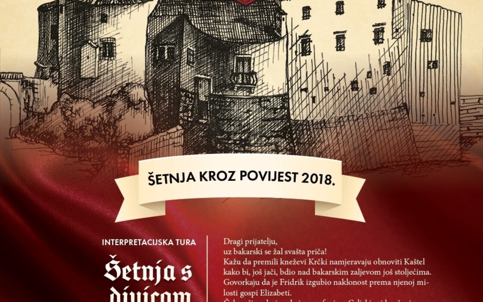 "Šetnja kroz povijest" Sve tajne gospode Frankopana u Bakru 23.6. otkriva sluškinja Margareta U programu "Šetnja kroz povijest" impozantni Kaštel u Bakru prvi put otvara svoja vrata i u tajnovitom labirintu svojih brojnih prostorija oživljava doba Frankopana.