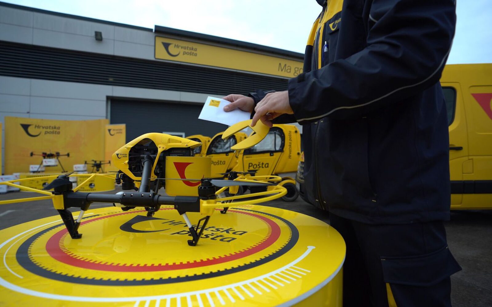 Suvremeni poštari Prvi Hrvati koji poštu dostavljaju dronom Milan Domazet, Ivan Vidaković i Davor Sladović iz zagrebačkog startupa AIR-RMLD od prošlog tjedna za Hrvatsku poštu bespilotnom letjelicom raznose pakete, piše u nedjelju Jutarnji list.