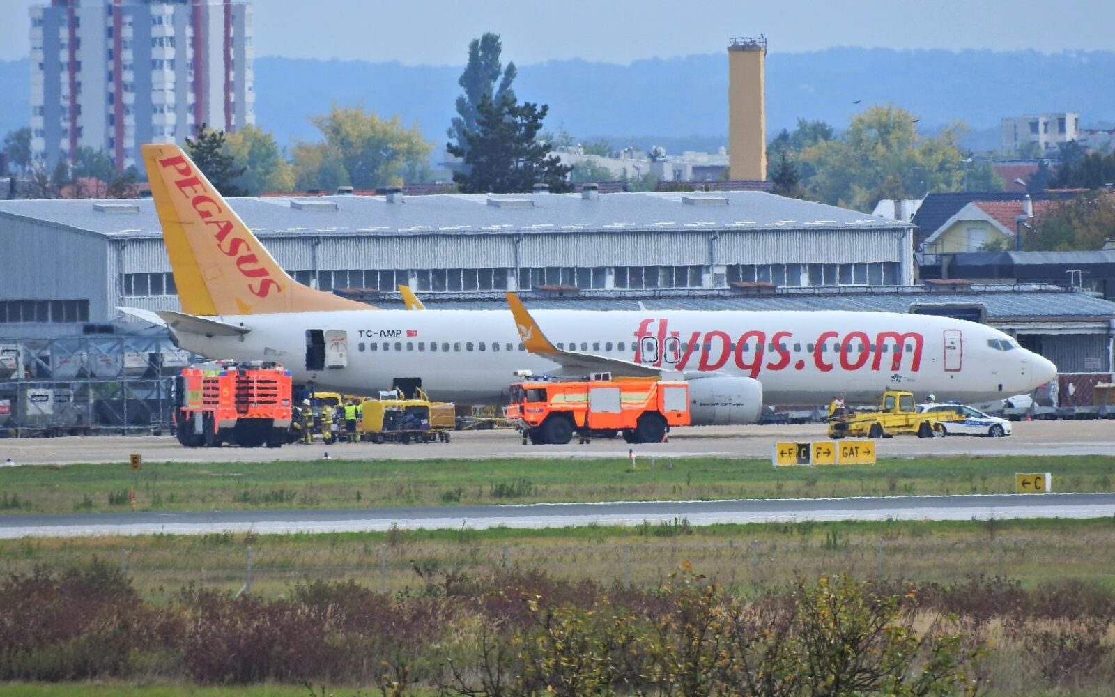 VATROGASCI NA PISTI FOTO: Zapalio se Boeing 737 i prisilno sletio zagrebačku zračnu luku Zapalilo se nešto u prtljažnom prostoru. U tijeku je pregled teretnog prostora kojeg obavlja Spasilačko-vatrogasna služba Međunarodne zračne luke Zagreb.