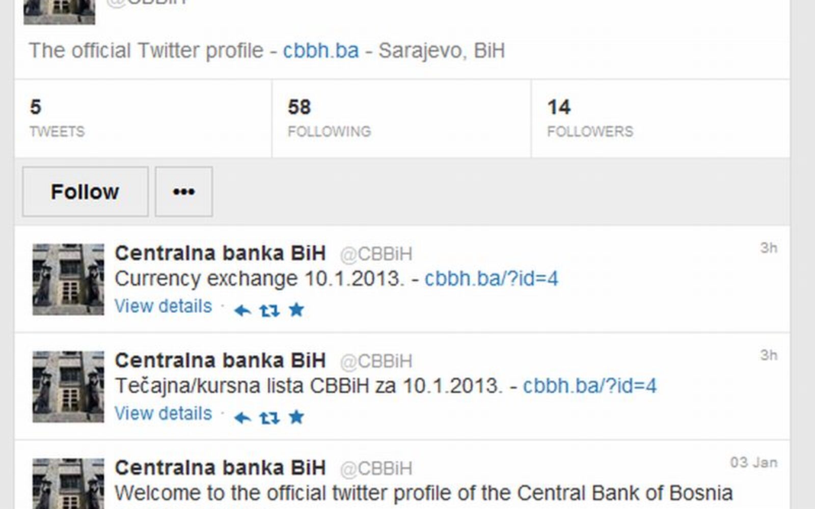 transparentni Centralna banka BiH osvanula na Twitteru Centralna banka BiH pokrenula je službeni profil na društvenoj mreži Twitter.