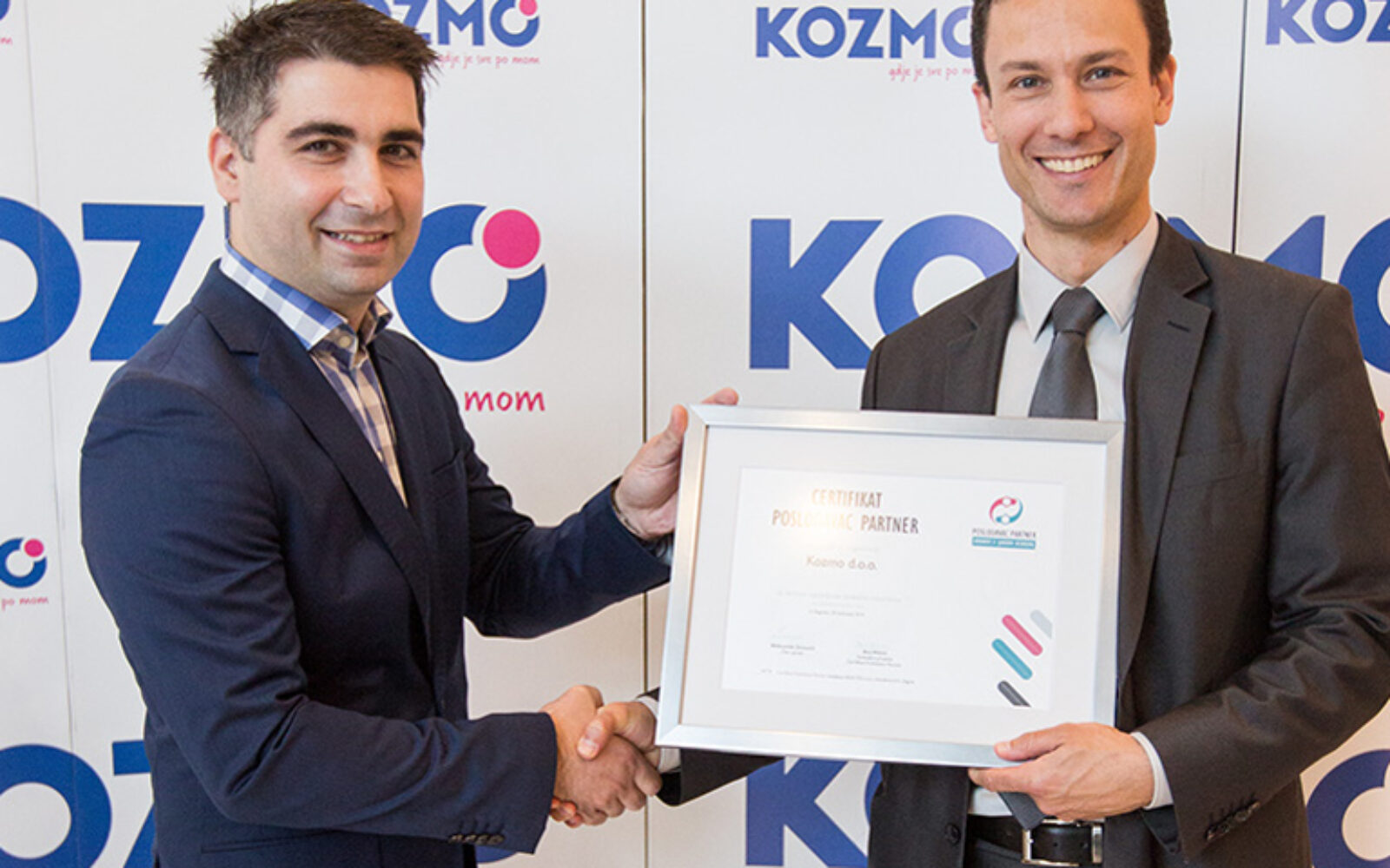 Domaće kompanije Kozmo četvrtu godinu za redom potvrdio status Poslodavac Partner Kozmu je na svečanoj dodjeli uručen certifikat Poslodavac Partner za izvrsnost u upravljanju ljudskim resursima za 2014. godinu.