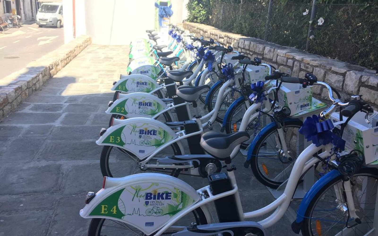 javni servis Svečano otvoren sustav javnih bicikala u Općini Medulin – Med BIKE Cijena iznosi 10 kn/2h za mehaničke bicikle, dok za električne iznosi 20 kn/2h.