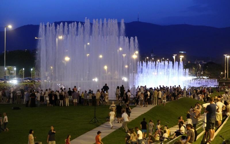 ZAGREB FOTO: Puštene u rad tri nove fontane, Bandić najavio sljemensku žičaru i tramvaje prema Zračnoj luci Bandić je za rujan najavio veliki koncert Prljavog kazališta na fontanama.
