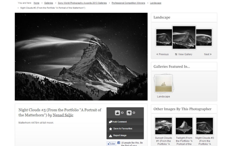priznanje Fotografu iz Hrvatske Sony World Photography dodijelio nagradu “Fotograf krajolika 2013. godine” Pobjedniku je nagrada dodijeljena na svečanoj ceremoniji u Londonu.