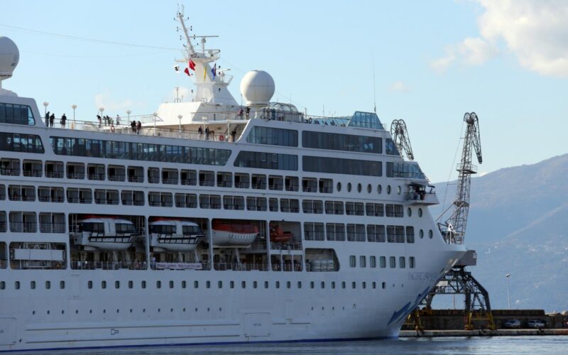 PLIJENI PAŽNJU FOTO: Luksuzni kruzer Pacific Princess uplovio u Rijeku Na brodu radi 373 članova posade.