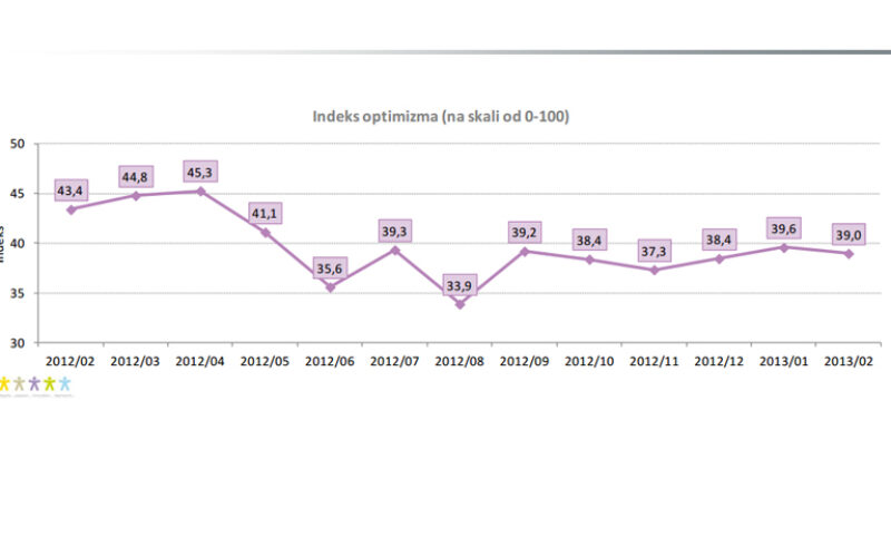 hendal Pogledajte kako se kretao indeks optimizma građana u zadnjih godinu dana Vrijednost indeksa optimizma u veljači (39,0) ne odstupa značajno od vrijednosti izmjerene u siječnju.