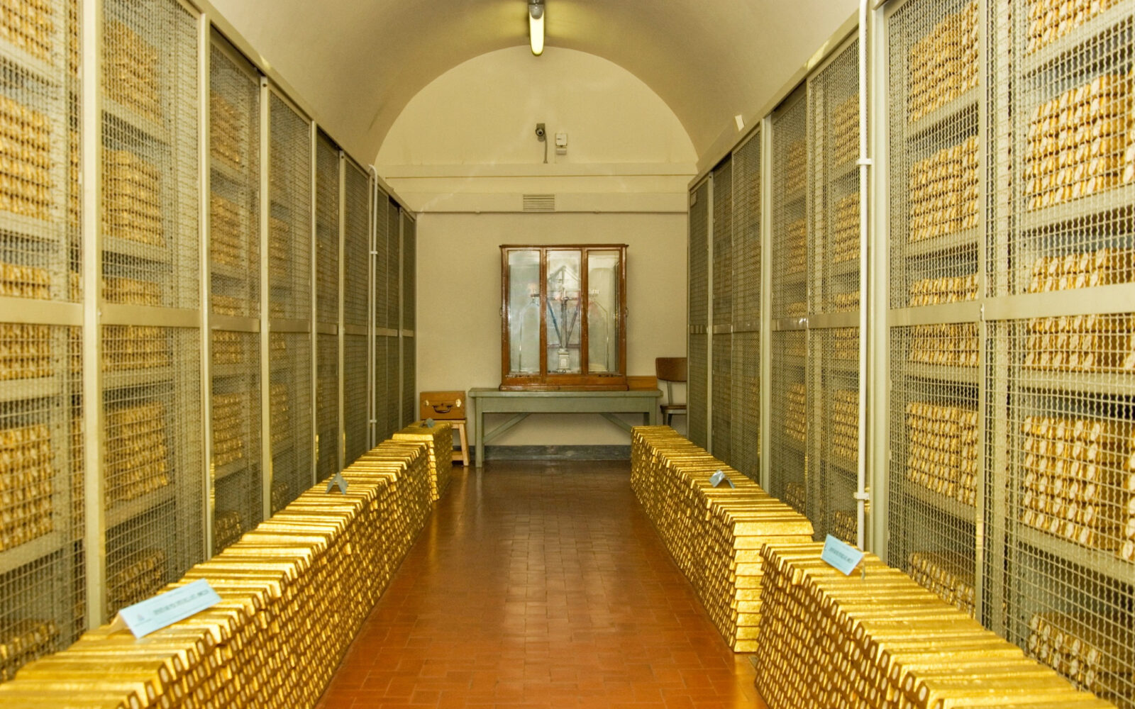 sakristija Zašto Italija ne prodaje 300 milijardi dolara zlata unatoč dugu od tri bilijuna eura? Neki tvrde da bi se prodajom poluga, koje su trenutno pohranjene u "sakristiji" moglo osigurati financiranje za osnovne javne usluge.