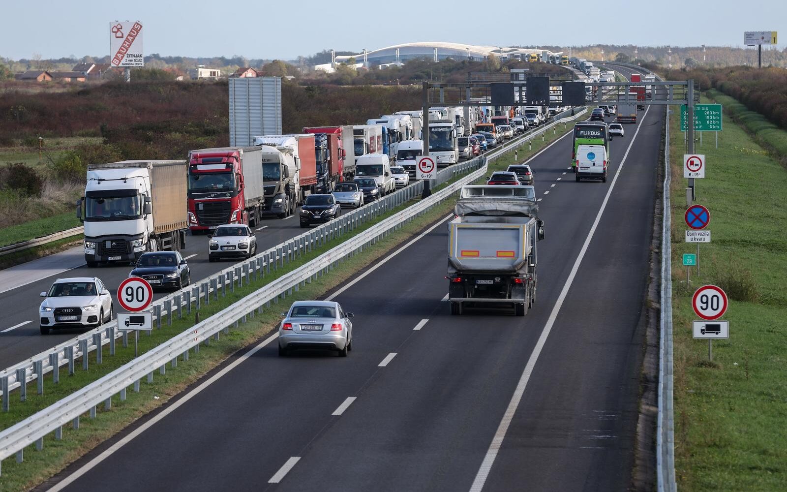 Pred naplatom Trakošćan, na autocesti A2 Zagreb-Macelj, kolona je oko 1,5 kilometar, a na A3 Bregana-Lipovac, na zagrebačkoj obilaznici od čvora Buzin prema naplatama Lučko oko 2 kilometra.