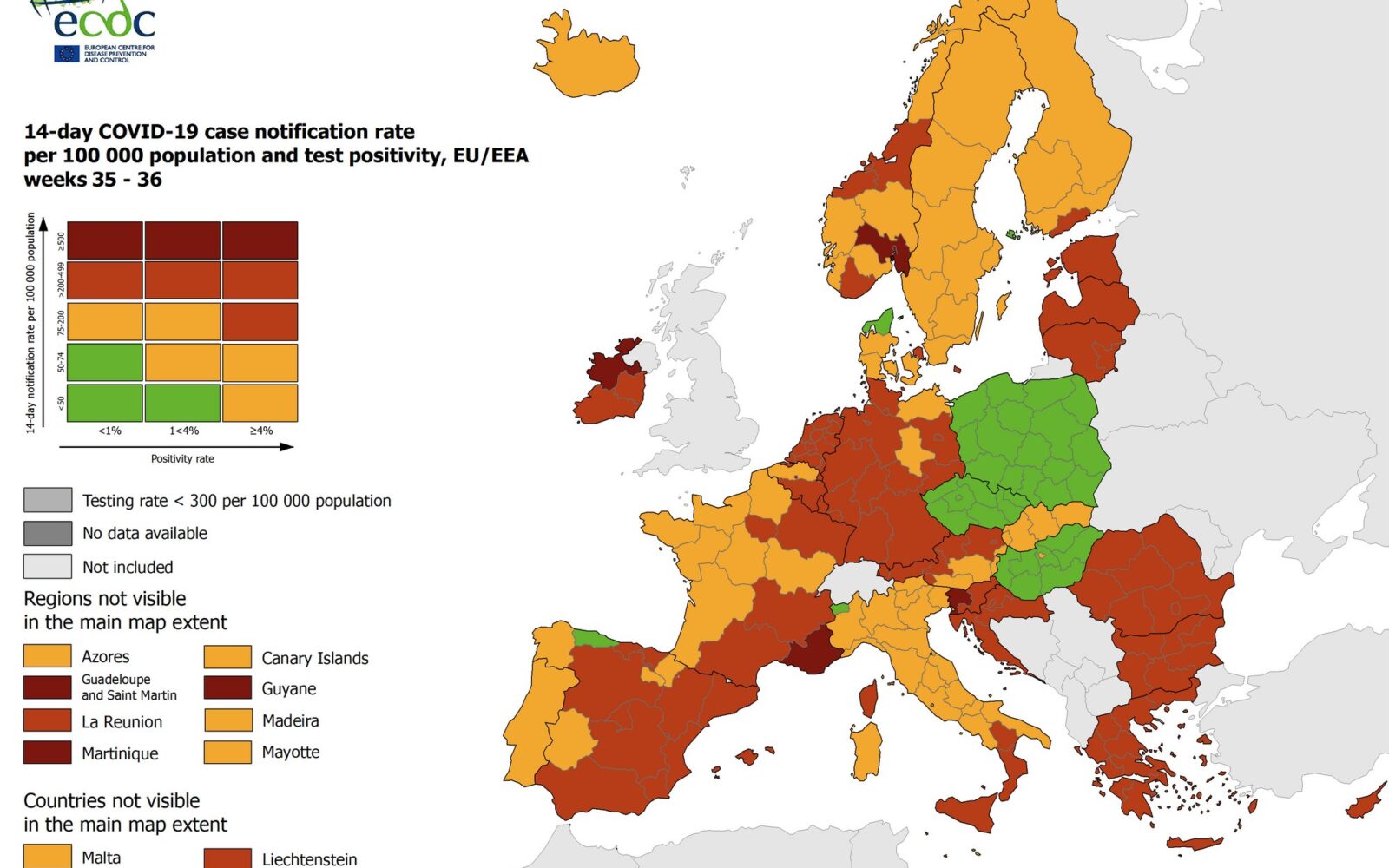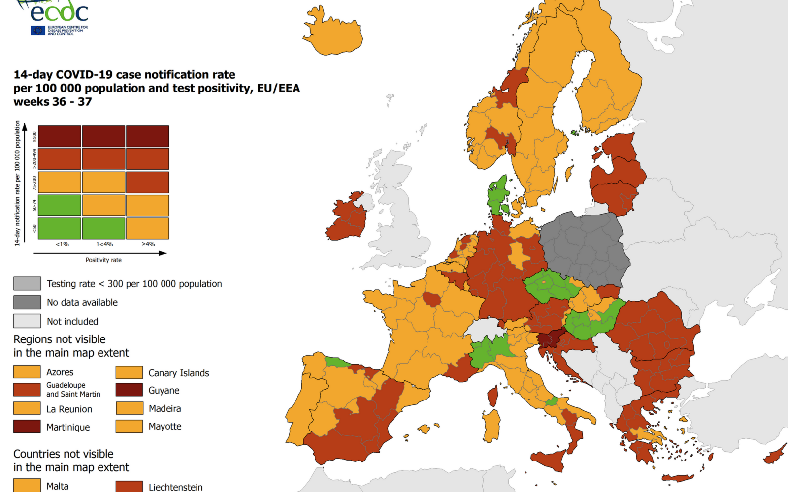 Epidemiološka karta ECDC objavio novu korona-kartu: Cijela Hrvatska ostala u crvenom ECDC je objavio novu korona-kartu po kojoj je cijela Hrvatska drugi tjedan zaredom u crvenom.