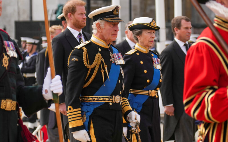 U procesiji iza lijesa bili su novi britanski kralj Karlo III. i članovi britanske kraljevske obitelji, među ostalima i malodobna djeca princa od Walesa, princ George i princeza Charlotte.