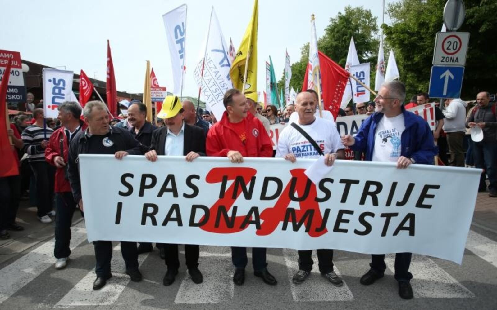 Poruke iz Siska FOTO: ‘Ustani roblje, diži se’, ‘Tajkunima profit, narodu glad’, ‘Otpor je naša budućnost’… Prosvjedno sindikalno obilježavanje Međunarodnog praznika rada, 1. svibnja održava se u Sisku pod sloganom "Za spas industrije i radnih mjesta".