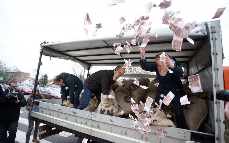 FOTO: Aktivisti bacali lažne novčanice tvrdeći da se Zagreb prema otpadu ponaša kao prema smeću