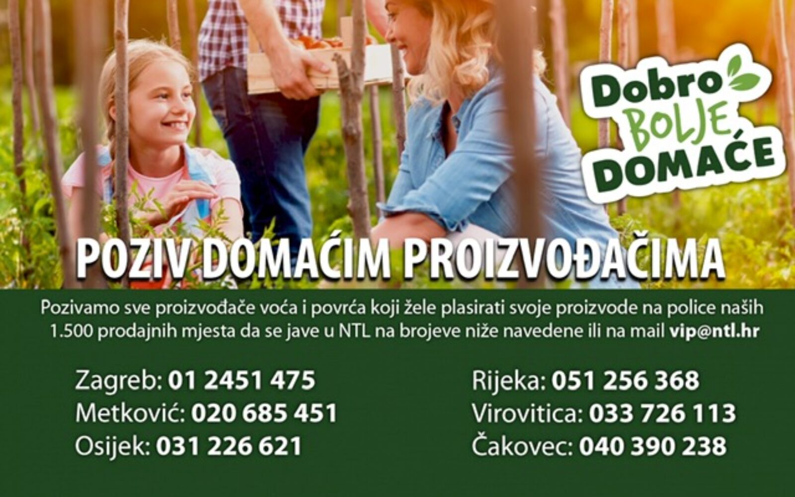 SURADNJA S VIŠE OD 1000 OPG-ova NTL poziva OPG-ove da se jave za suradnju – osiguran je izravni otkup voća i povrća na šest lokacija u Hrvatskoj Narodni trgovački lanac (NTL) surađuje s više od 1.000 obiteljskih poljoprivrednih gospodarstava, a domaći proizvodi koje od njih izravno kupuje svakodnevno su dostupni kupcima u 1.500 prodajnih mjesta članica Grupe NTL.