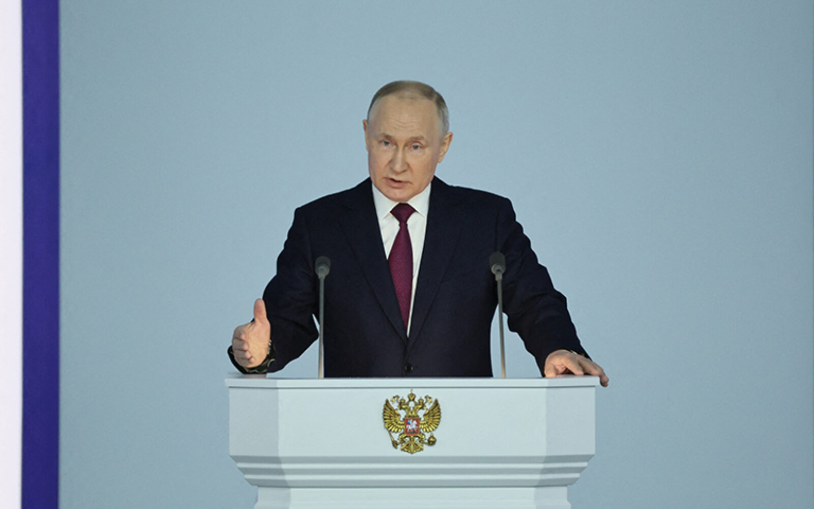 Upozorenje Putin suspendirao sporazum o nuklearnom oružju Gotovo godinu dana nakon što je naredio invaziju koja je pokrenula najveću konfrontaciju sa Zapadom od dubina Hladnog rata, Putin je poručio da će Rusija postići ratne ciljeve i optužio Zapad da pokušava uništiti Rusiju.