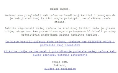 Phishing kampanje Upozorenje za građane: Čuvajte se najnovije prijevare, koriste se sofisticirane metode koje lako zavaraju Pokušaji prijevara najčešće se odvijaju putem lažne elektroničke pošte, SMS poruka i lažnih internetskih stranica.