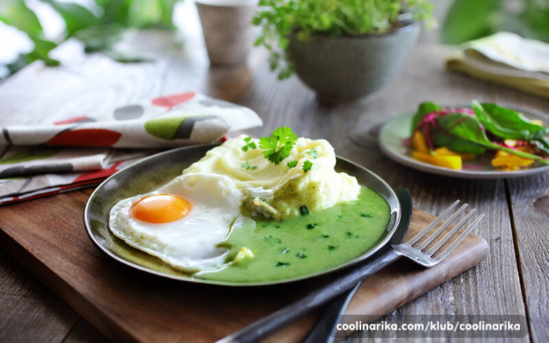 recept dana Jaje na oko s umakom od špinata Za jednostavno jelo umjesto pečenih jaja možete poslužiti popečene hrenovke.