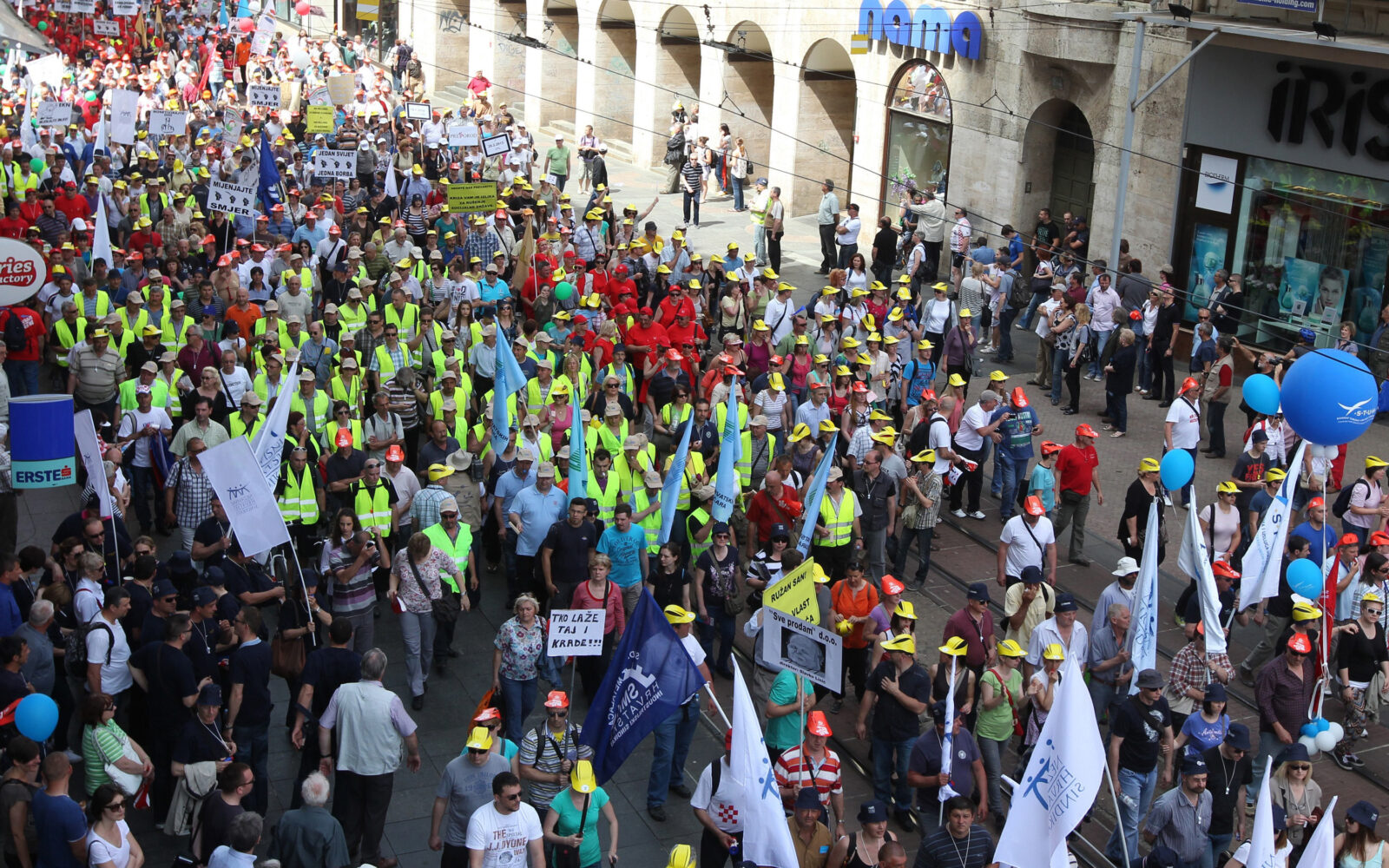 1. svibanj Na sindikalnom prosvjedu u Zagrebu oko 20 tisuća ljudi Oko 20 tisuća prosvjednika okupilo se na Jelačićevu trgu na prvosvibanjskom sindikalnom skupu pod nazivom "Mijenjajte smjer".