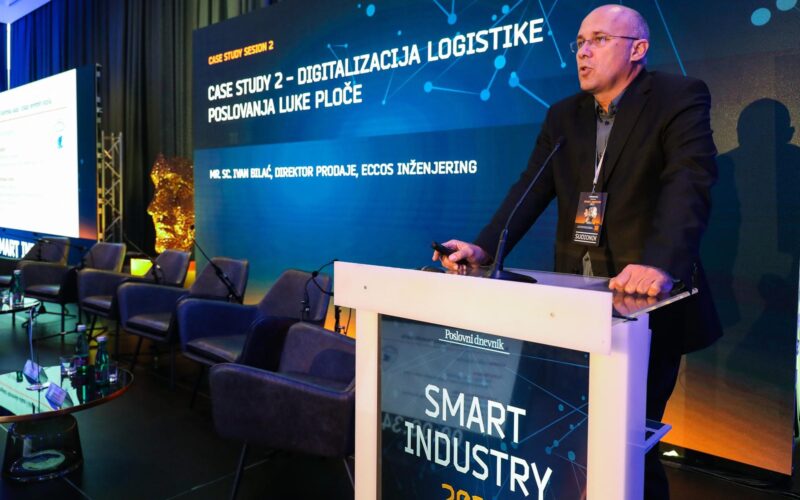 Koliko je i zašto sve važna digitalna transformacija u nekoj luci, na konferenciji Smart industry 2022., na primjeru digitalizacije logistike poslovanja Luke Ploče, pokazao je mr. sc. Ivan Bilać, direktor prodaje Eccos inženjeringa.