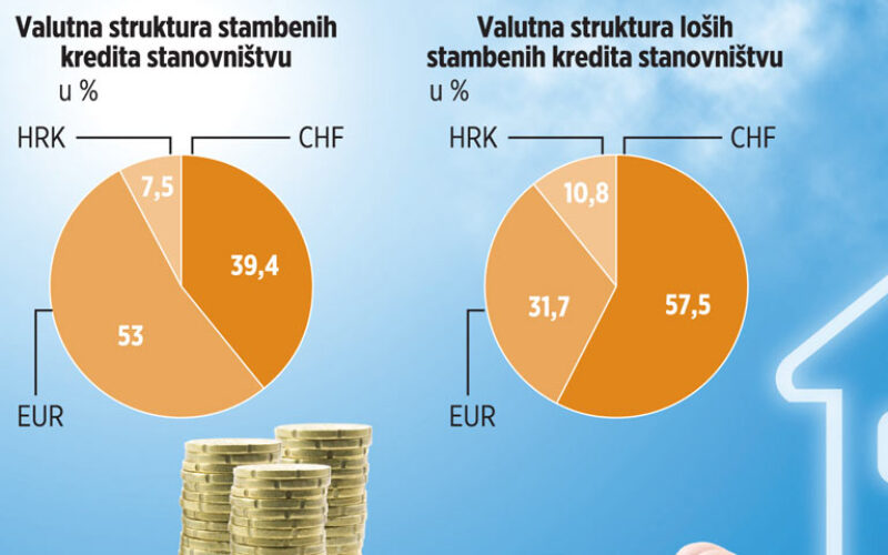Valutni rizik U francima 2 milijarde kuna loših kredita Razmjerno veći udjel stambenih kredita u CHF u ukupnim neurednim u toj kategoriji banke stoji gotovo milijardu kuna rezervacija.