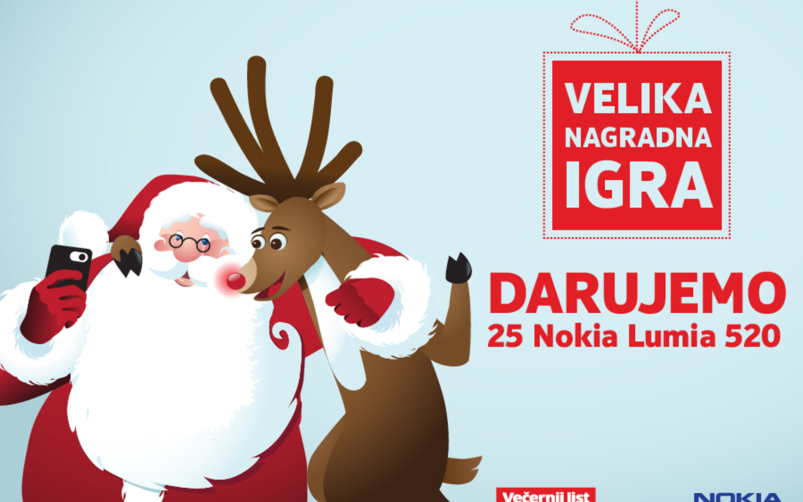 Portal Vecernji.hr Osvojite jedan od 25 Nokia LUMIA 520 pametna telefona Uključite se u veliku online nagradnu igru na portalu Vecernji.hr u kojoj svaki dan do 31.12.2013. možete osvojit jedan smartphone Nokia LUMIA 520