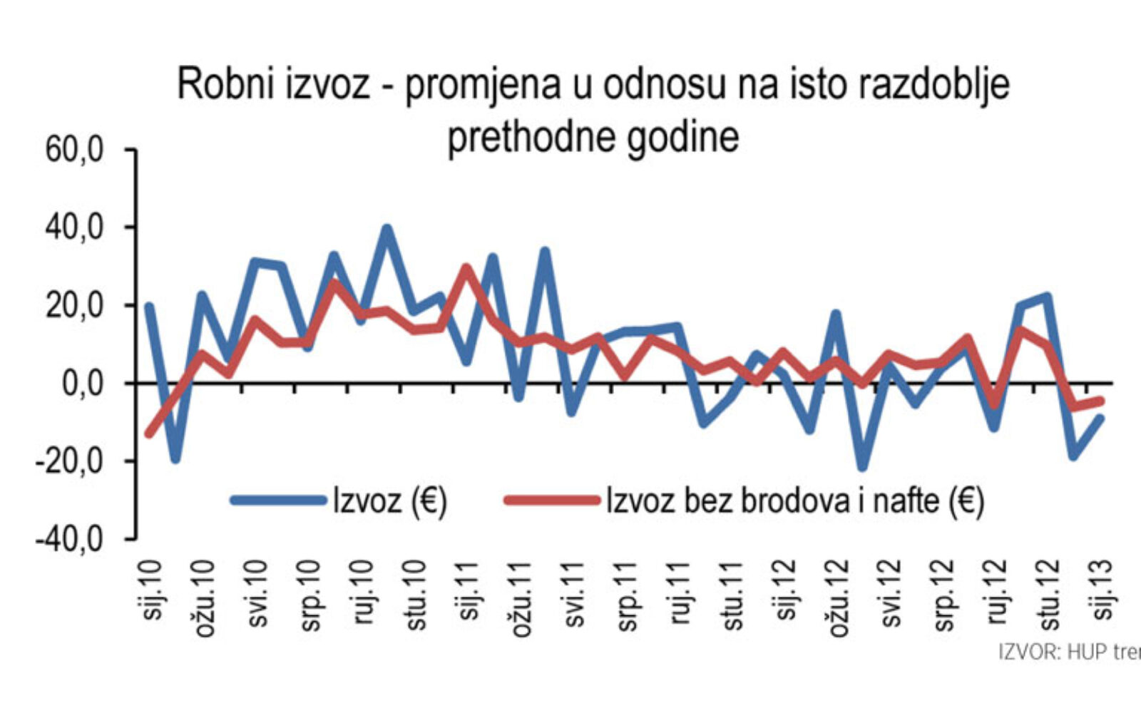 Trendovi Izvoz u siječnju zabilježio pad od 9,13 posto Značajniji rast izvoza od 20,8 posto ostvarila je djelatnost proizvodnje računala, elektroničkih i optičkih proizvoda.