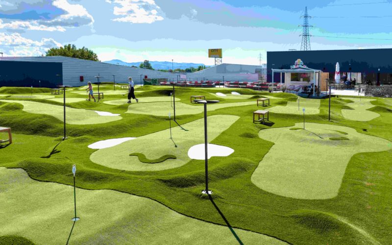 Nova razina shopping centra Otvoreni prvi mini golf tereni na krovu zagrebačkog trgovačkog centra Na više od 1.300 četvornih metara prostiru se reljefne staze različitih oblika s čak 18 rupa.
