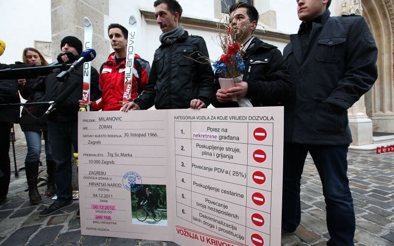 Mladež Hrvatske demokratske zajednice (MHDZ) uručila je danas ispred Vlade RH na Markovu trgu u Zagrebu posebnu vozačku dozvolu premijeru Zoranu Milanoviću. Vozačka dozvola koja simbolizira povjerenje hrvatskih građana za vođenje zem…