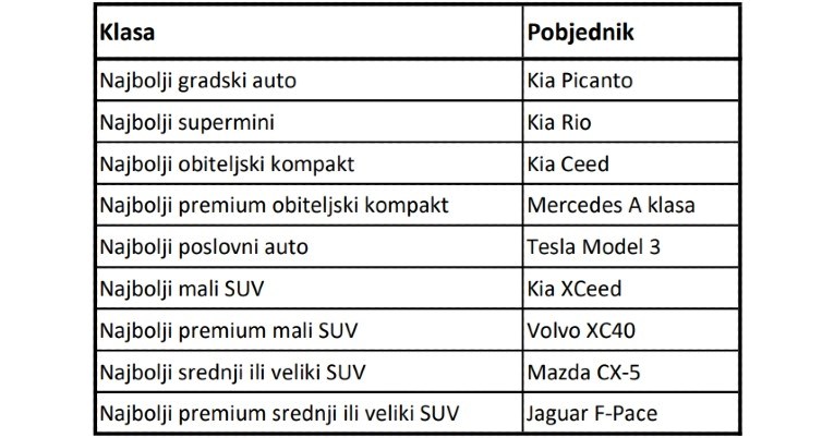 Gledano po segmentima, Kia je opet dominantna s četiri pobjednika u devet kategorija.