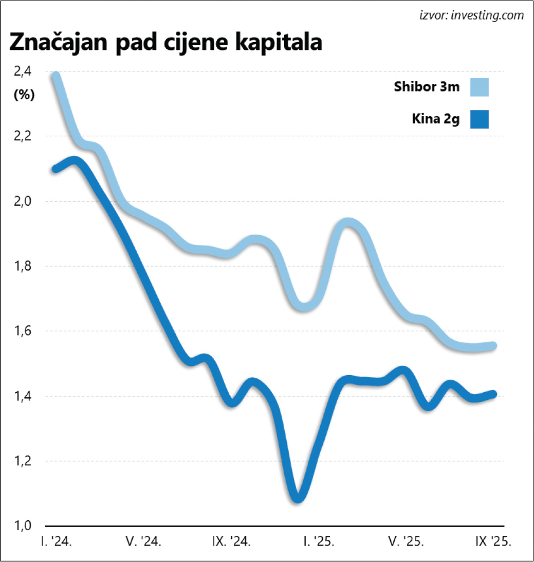 Naime, cijenu agresivne industrijske ekspanzije, ionako već ovisne o jeftin(ij)oj radnoj snazi, u najvećoj mjeri plaćaju – potrošači. Najprije zbog činjenice da je upravo industrija ključan državni prioritet, pa za građane (potrošače) u pravilu ostaju samo mrvice, što se najprije manifestira slabašnim sustavom socijalnog i mirovinskog osiguranja. Usto trpe i ozbiljne posljedice kronične financijske represije jer izdašno financiranje strateških grana industrije iziskuje jeftine izvore kapitala. Za to su, pored jedinca lokalne uprave (provincija), u prvom redu zadužene velike banke u državnom vlasništvu, a ciljano usmjeravanje kapitala po iznimno povoljnim uvjetima ujedno ruši i pasivne kamatne stope (na štednju). O tome zorno svjedoči negativan trend na tržištu novca, gdje se tromjesečni Shibor (kineski ekvivalent Euribora) u nepune dvije godine gotovo prepolovio.