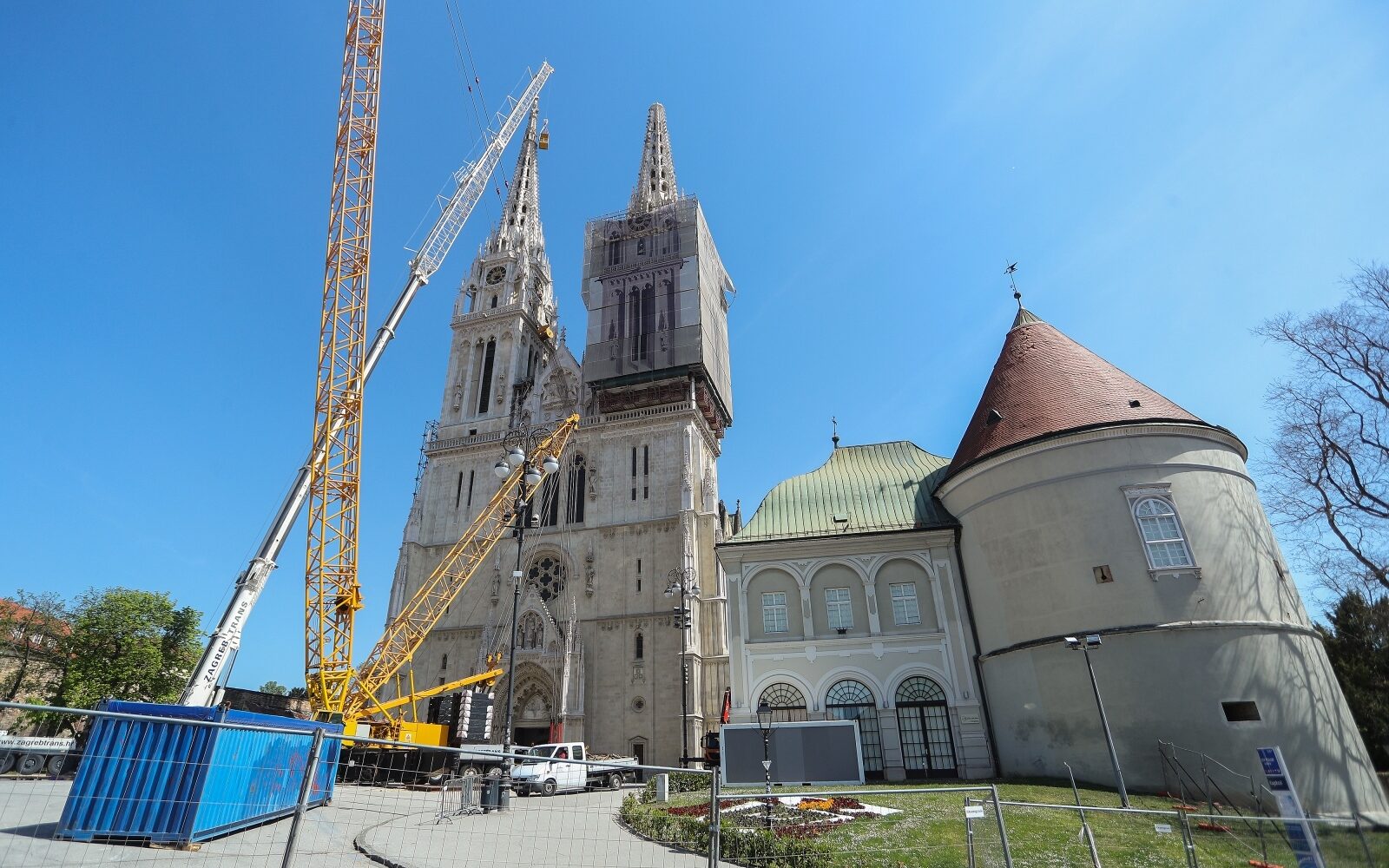 kontrolirana eksplozija FOTO/VIDEO: Sjeverni toranj zagrebačke katedrale rušiti će se dinamitom, pripreme u tijeku Sjeverni toranj zagrebačke katedrale, rušit će se dinamitom.