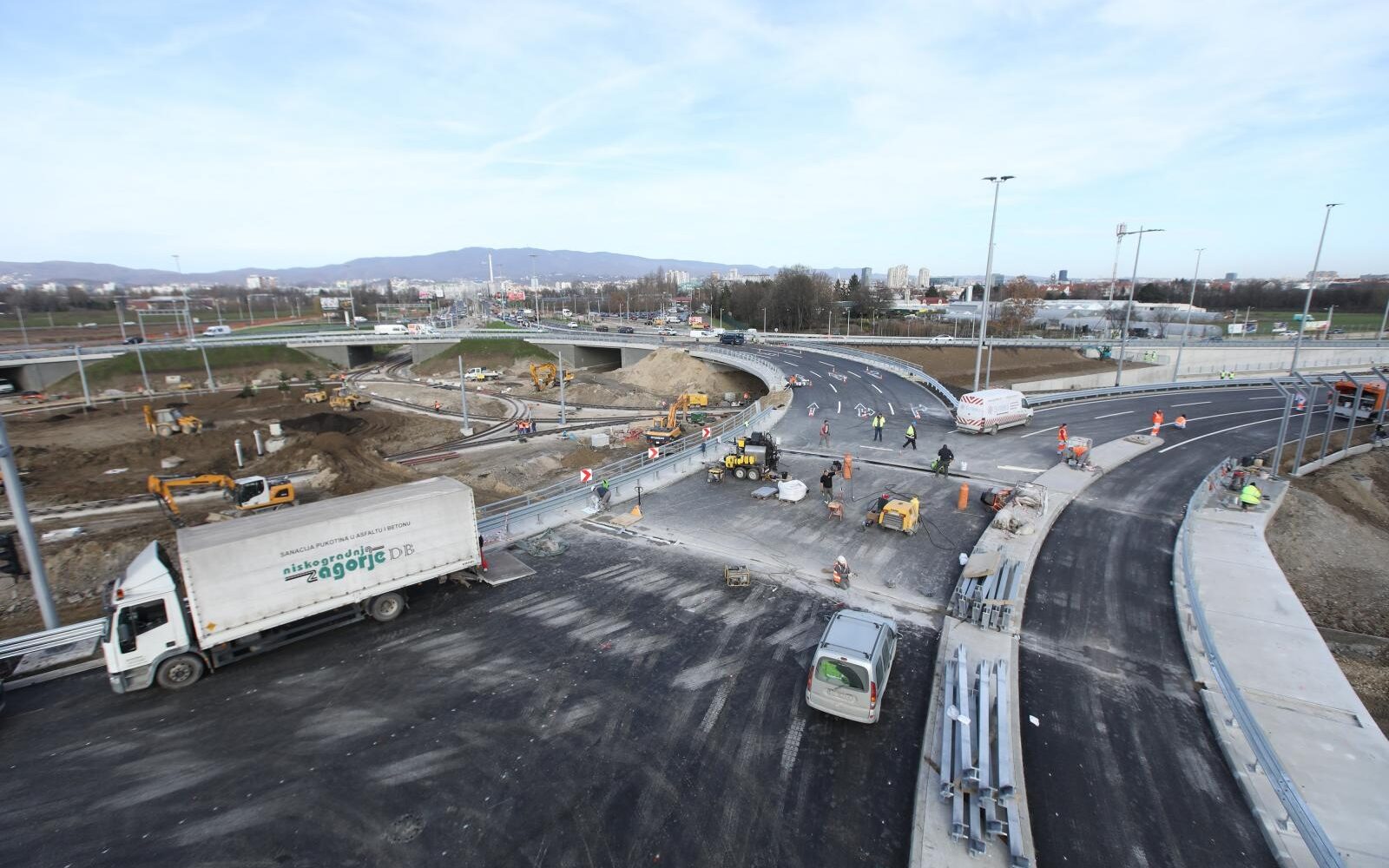 JOŠ MALO... FOTO: U tijeku su završni radovi, novi zagrebački rotor uskoro ide u promet Završava se tramvajska pruga i okretište unutar rotora.
