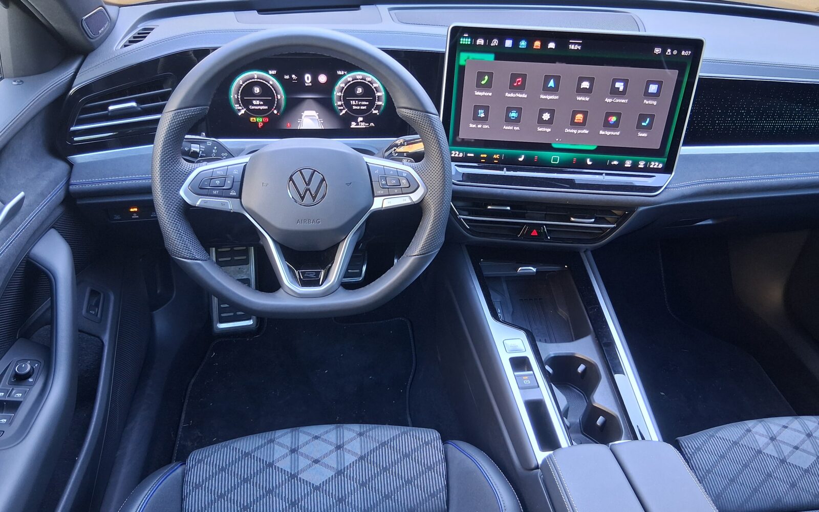 Kokpit je digitaliziran, uz novu virtualnu instrumentnu ploču dijagonale 26 cm, dok središnji dodirni zaslon u standardnoj opremi ima dijagonalu od 12,9 inča, a u boljim razinama opreme 15 inča. Ekrani su visoke razlučivosti, a softver se temelji na novoj operativnoj platformi MIB4. Radi brzo, sve je jasno i pregledno te se brzo dolazi do željene funkcije. U tome vozaču i putnicima pomaže glasovna asistentica IDA, a tu je i napredna funkcija ChatGPT. High-tech osjećaj za volanom dodatno naglašava mala ručica automatskog mjenjača koja više nije na središnjem dijelu već se nalazi iza volana, kao u Volkswagenovim ID modelima.