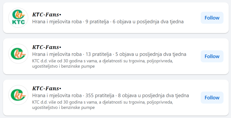 Iz KTC-a dodaju kako se lažne stranice na Facebooku predstavljaju kao KTC pod nazivom “KTC fans”. “Naša stranica nosi plavu kvačicu, oznaku ‘provjereno’, koja potvrđuje da je autentičnost stranice službeno provjerena”.